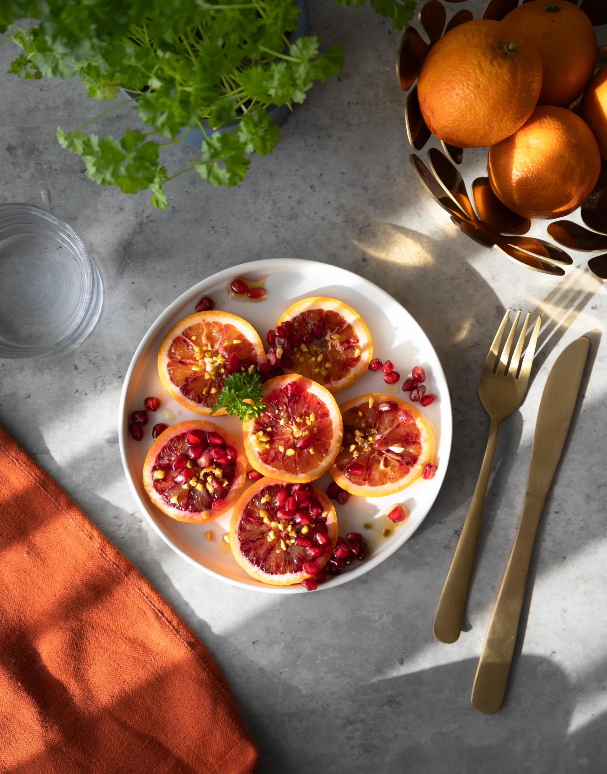 Blutorangen-Carpaccio mit Pistazien und Granatapfel